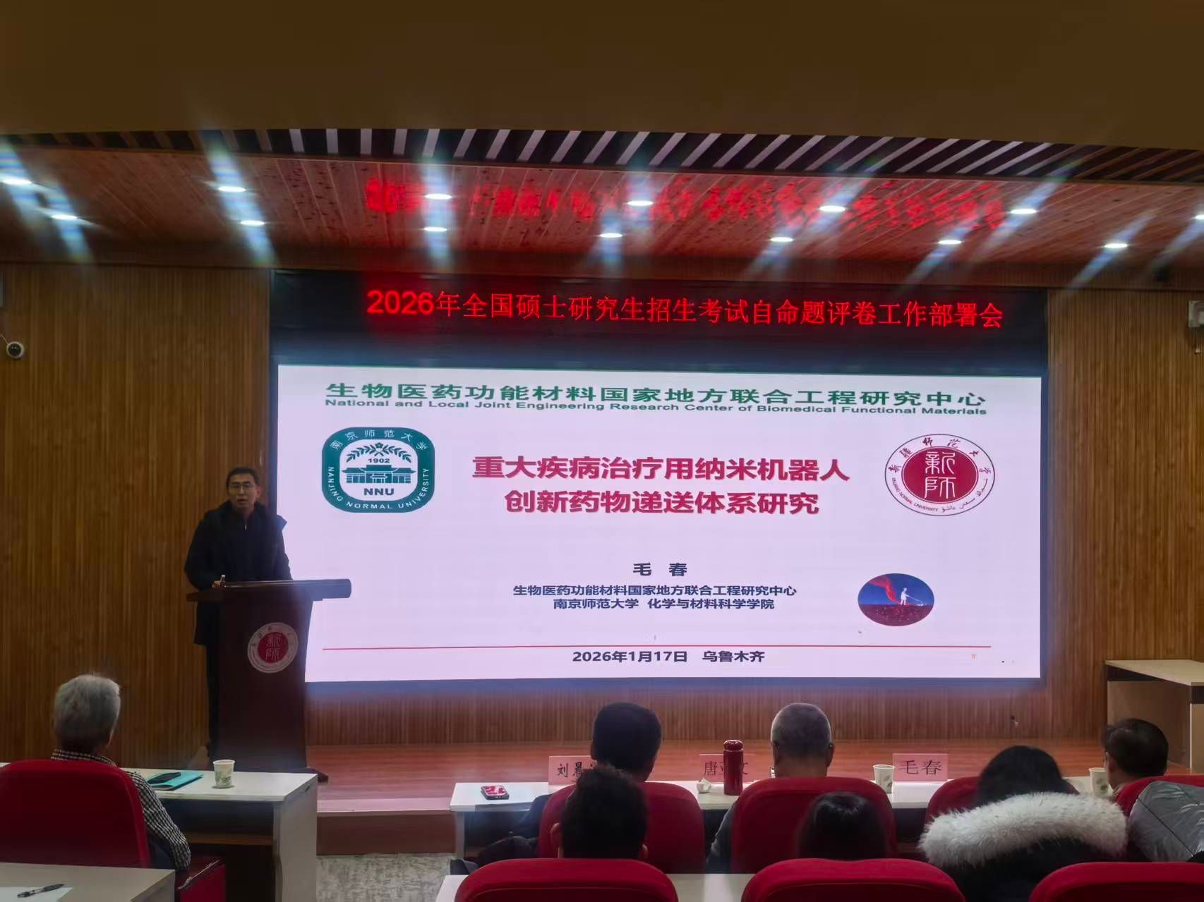 毛春教授作题为《重大疾病治疗用纳米机器人创新药物研究》的专题学术报告。在报告中系统介绍了微纳米机器人在重大疾病治疗中的前沿应用与创新药物研发进展。重点阐述了如何通过结构设计、材料创新与生物医学工程相结合,构建具有靶向递送、可控释放和自主运动功能的纳米机器人系统,以应对肿瘤、心脑血管疾病等治疗难题。报告从“生物医用微纳米机器人的设计原理”“疾病微环境响应策略”“临床转化挑战与前景”三个维度展开,结合其团队在《Nature Nanotechnology》《Nature Communications》《Science Advances》等国际顶级期刊上发表的研究成果,展示了纳米机器人技术在提高药物利用率、降低副作用、实现精准治疗方面的突破性潜力。